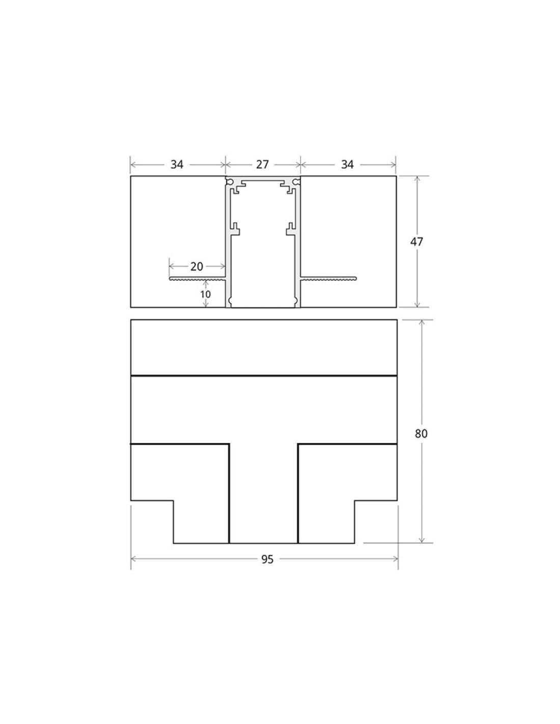 Pieza en forma de T para conectar dos tramos de carril magnético empotrado.