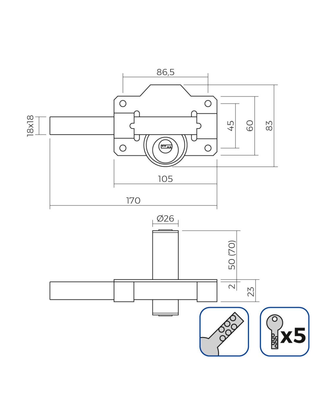 Cerrojo de seguridad color níquel incluye 5 llaves de seguridad edm 8425998851915 85191 EDM