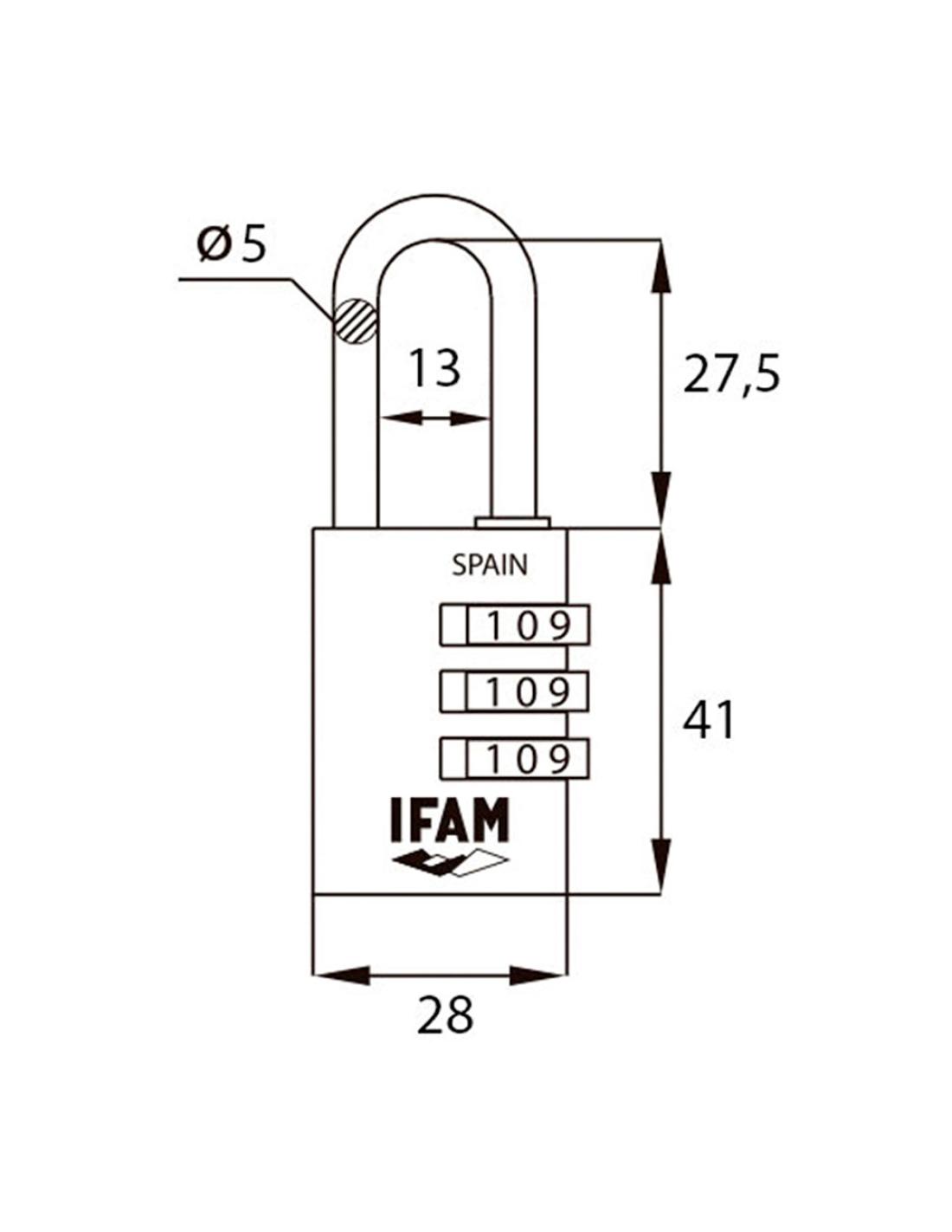 Candado col combi30 amarillo 30mm. arco ø5mm. con combinación. ifam 8420078432169 87657 IFAM