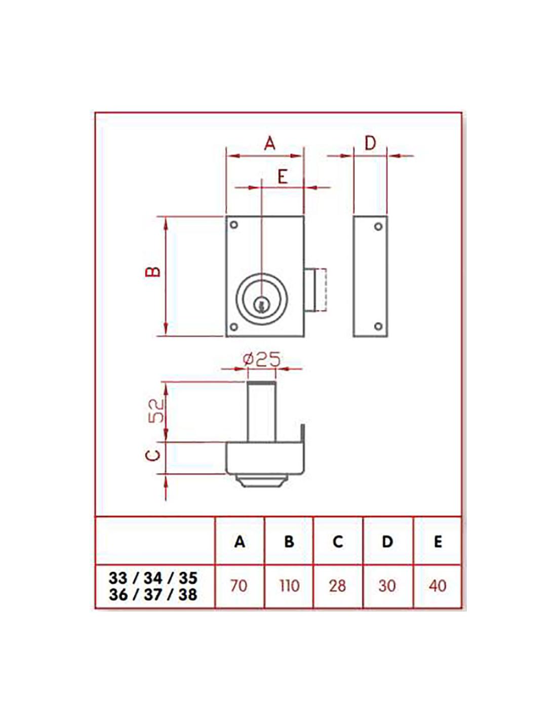 Cerradura de sobreponer solo llave. izquierda jis 33-7i jis 8422463033722 88566 JIS