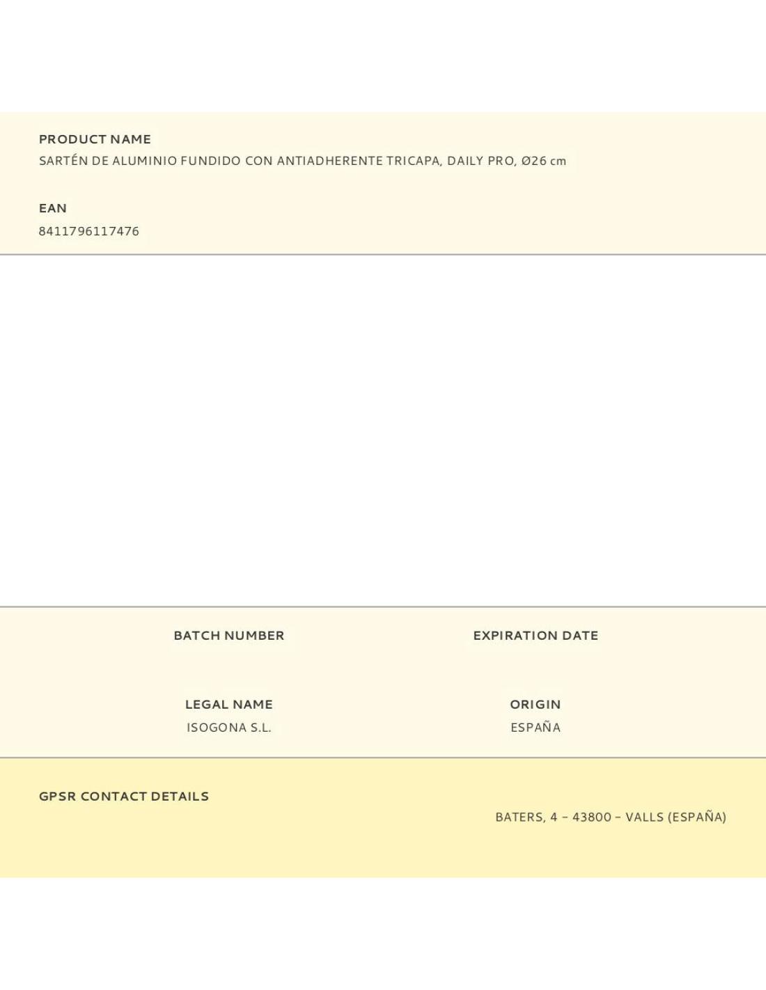 Sartén de aluminio fundido con antiadherente tricapa, daily pro, ø26 cm 8411796117476 29152 BRA