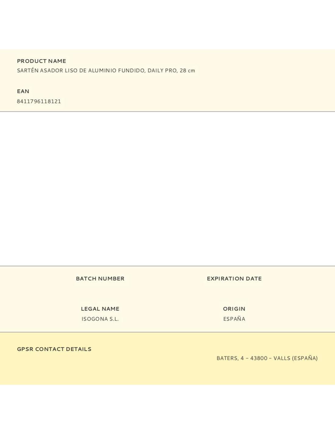 Sartén asador liso de aluminio fundido, daily pro, 28 cm 8411796118121 29156 BRA