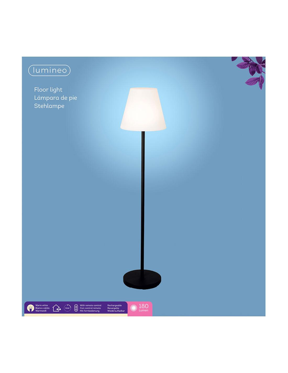 Lámpara de pie color blanco y negro para exteior y interior recargable con mando a distancia 150cm 894459 perfecta lámpara de diseño minimalista para exterior y interior con mando a distancia para controlar la intensidad de la luz, 180 lumen y led cálido. batería 2600mah 18650 li-ion