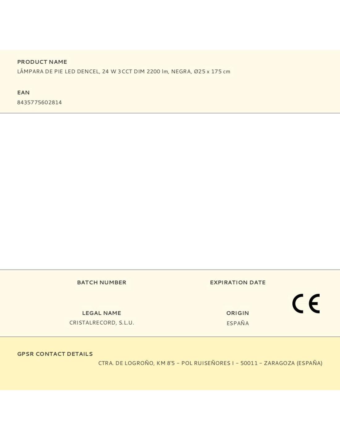 Lámpara de pie led dencel, 24 w, luz blanca cct 2700-4000-6500k, dimable, 2200 lm, irc/cri 80 negra, metálica temporizador 1 h con mando a distancia (2 x aa no incluidas) memoria de encendido cinco modos clase energética f 100-240 v~50-60 hz ø25 x 175 cm