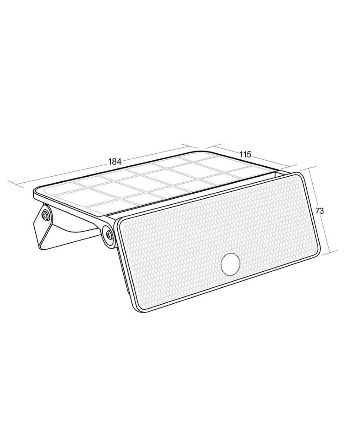 Foco LED compacto "todo en 1" con panel solar integrado de alta capacidad. Incorpora sensor de movimiento y luminosidad. 3 modos de funcionamiento y batería reemplazable.