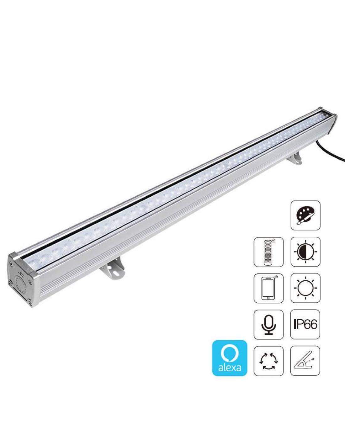 Con alimentación directa a 220V y controlador incorporado que permite su control externo de forma sencilla con un mando a distancia compatible (opcional), WiFi con Smartphone mediante APP o Alexa