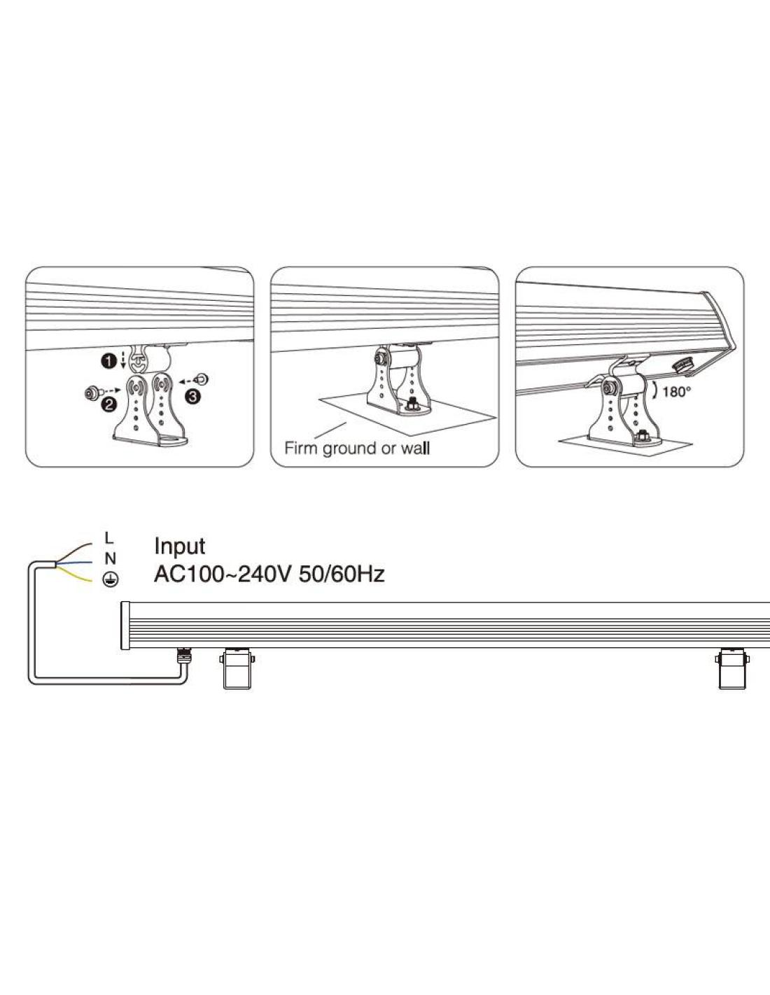 - Fácil instalación. Incluye conector rápido de tres pines. Opcionalmente es posible poner un alargador para conectar otro proyector o un cable para conectar directamente a la corriente eléctrica.