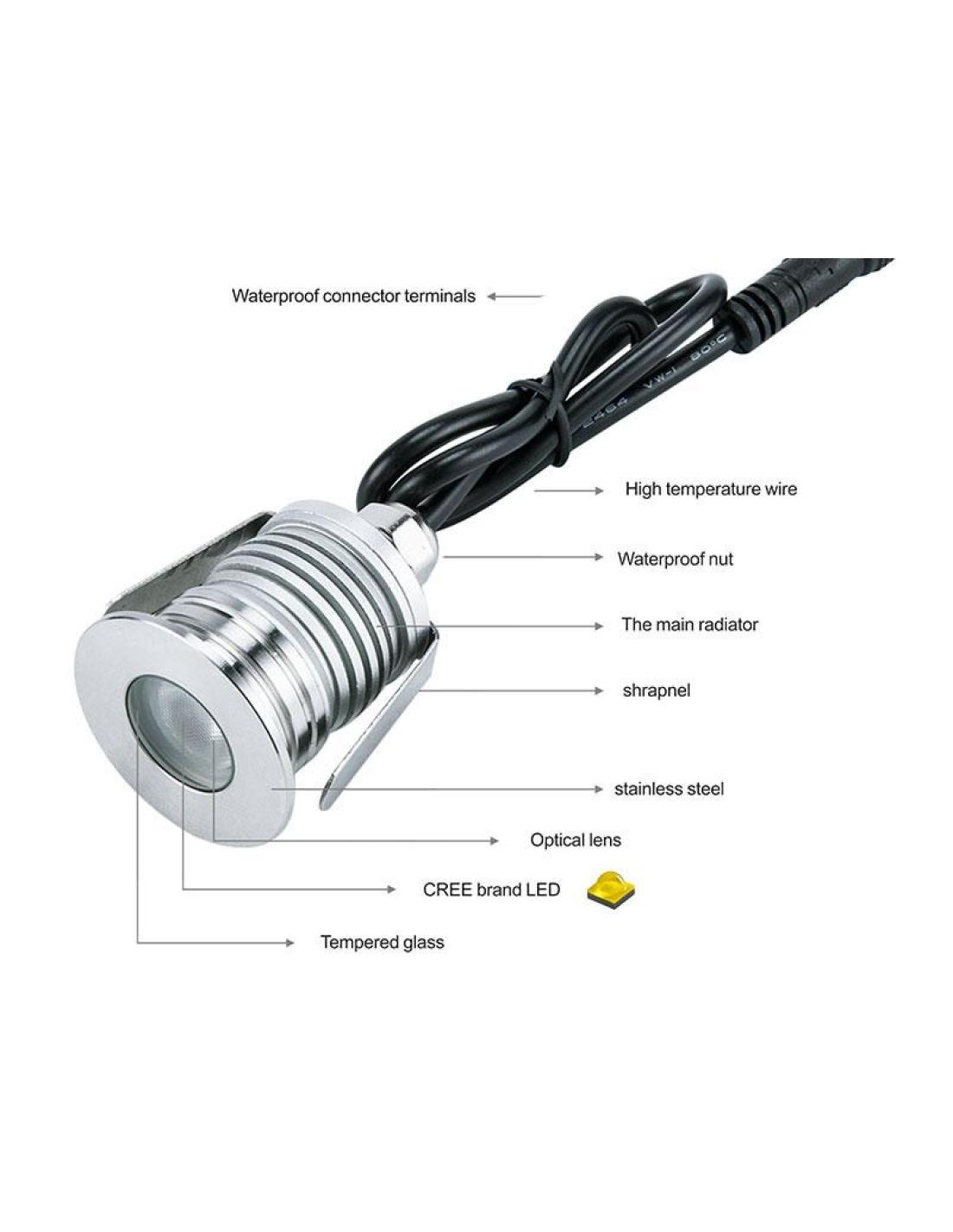 Foco para empotrar en el suelo de gran calidad, fabricado en acero inoxidable de gran resistencia que permite soportar el paso de personas. De reducido tamaño y alimentación de AC/DC12V. Ideal para utilizar como baliza empotrada para señalizar e iluminar zonas de paso. Mínima emisión de calor y mínimo consumo.