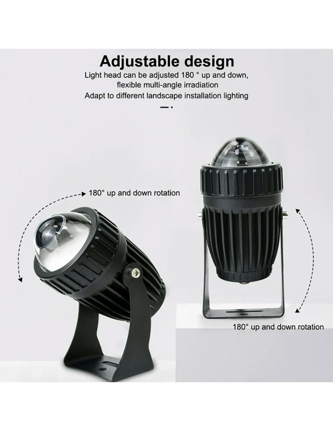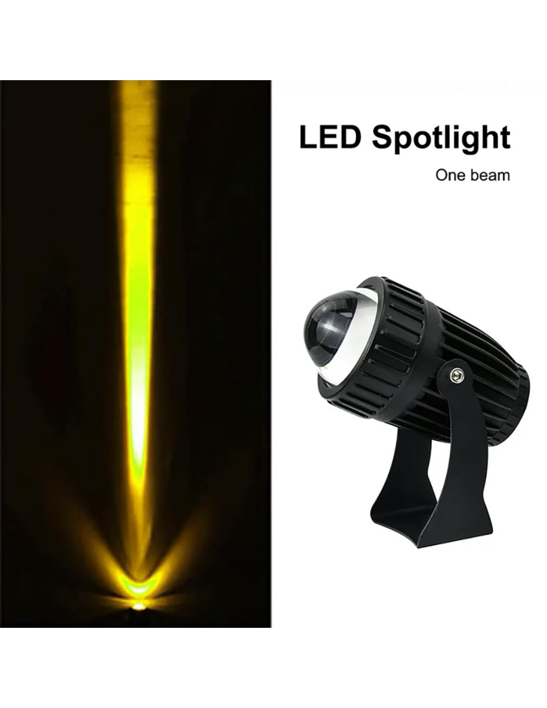Foco Led para exteriores que incorpora una lente especial que ofrece un estrecho haz de luz con una longitud de hasta 100 metros. Ideal para iluminación decorativa de edificios, jardines, etc.