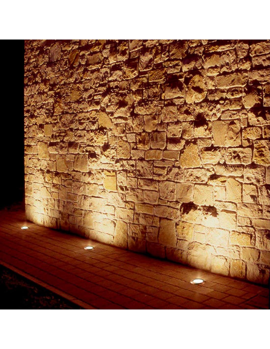 Baliza Led para empotrar en suelos en exterior. Foco de 3 Led y 3W de potencia de bajo consumo para la ambientación de cualquier espacio exterior. Alto índice de reproducción cromática (CRI) y fuerte grado de protección IP67. Ideal para la instalación en suelos de terrazas, jardines, caminos.