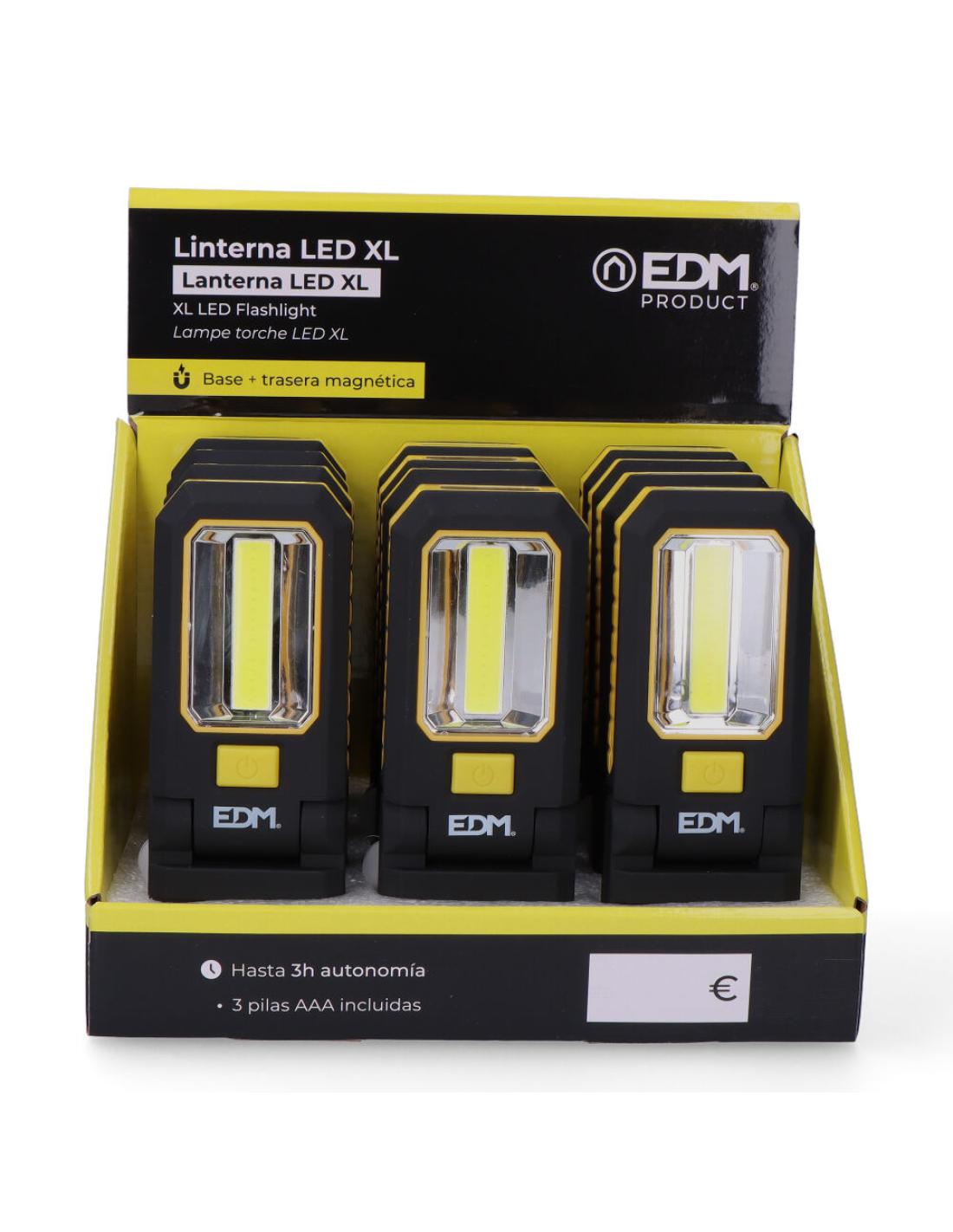 Linternas - EDM 36387 - Linterna led cob 3 leds xl de 200lm. con gancho e iman 3xaaa (pilas incluidas) edm 8425998363876 36387 EDM