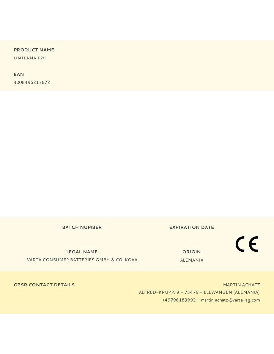 Linterna f20, led brillante de alto rendimiento, 100 lm, con 2 modos de luz: alta, baja. rango del foco: 30 m, autonomía: 10 horas. material: aluminio, pc, tpr. batería 3 x longlife power aaa no incluidas. dimensiones: ø30 mm cabezal, longitud 140 mm