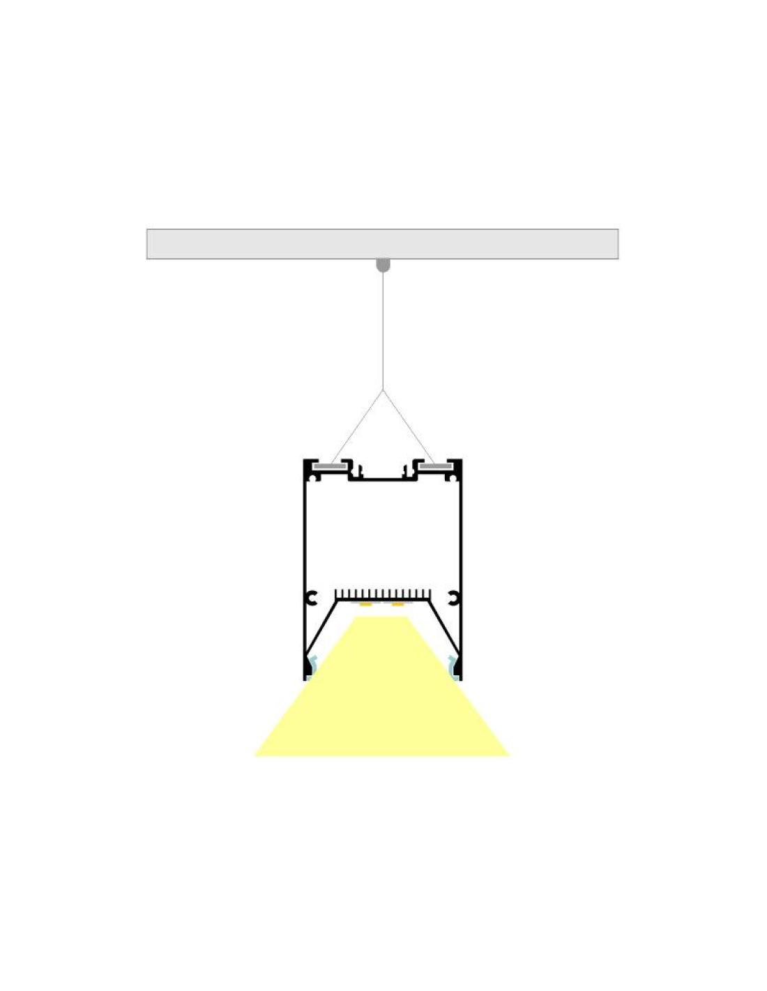 Luminaria de suspensión lineal que ofrece una iluminación general a través del difusor de policarbonato opal que crea un ambiente perfecto para cualquier estancia. Luz (2700K-6500K) ajustable mediante mando a distancia.