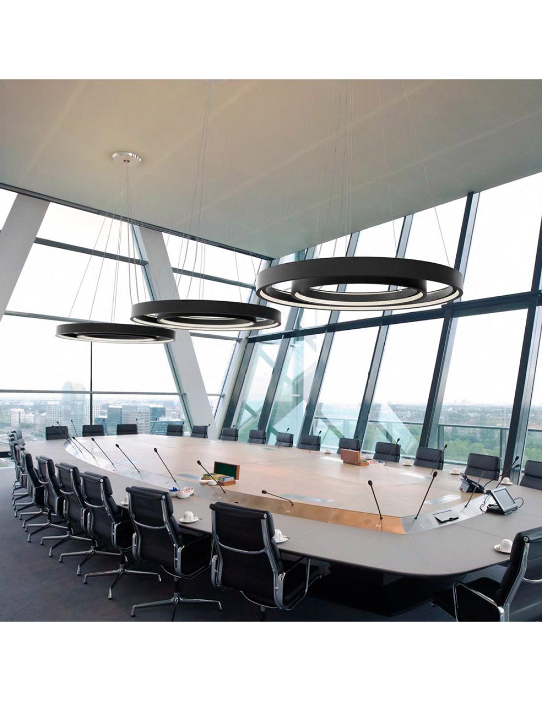 Con un diseño limpio y arquitectónico en donde la última tecnología led es adaptada a la simplicidad de la lámpara en forma de anillo creando una luz difusa y suave.