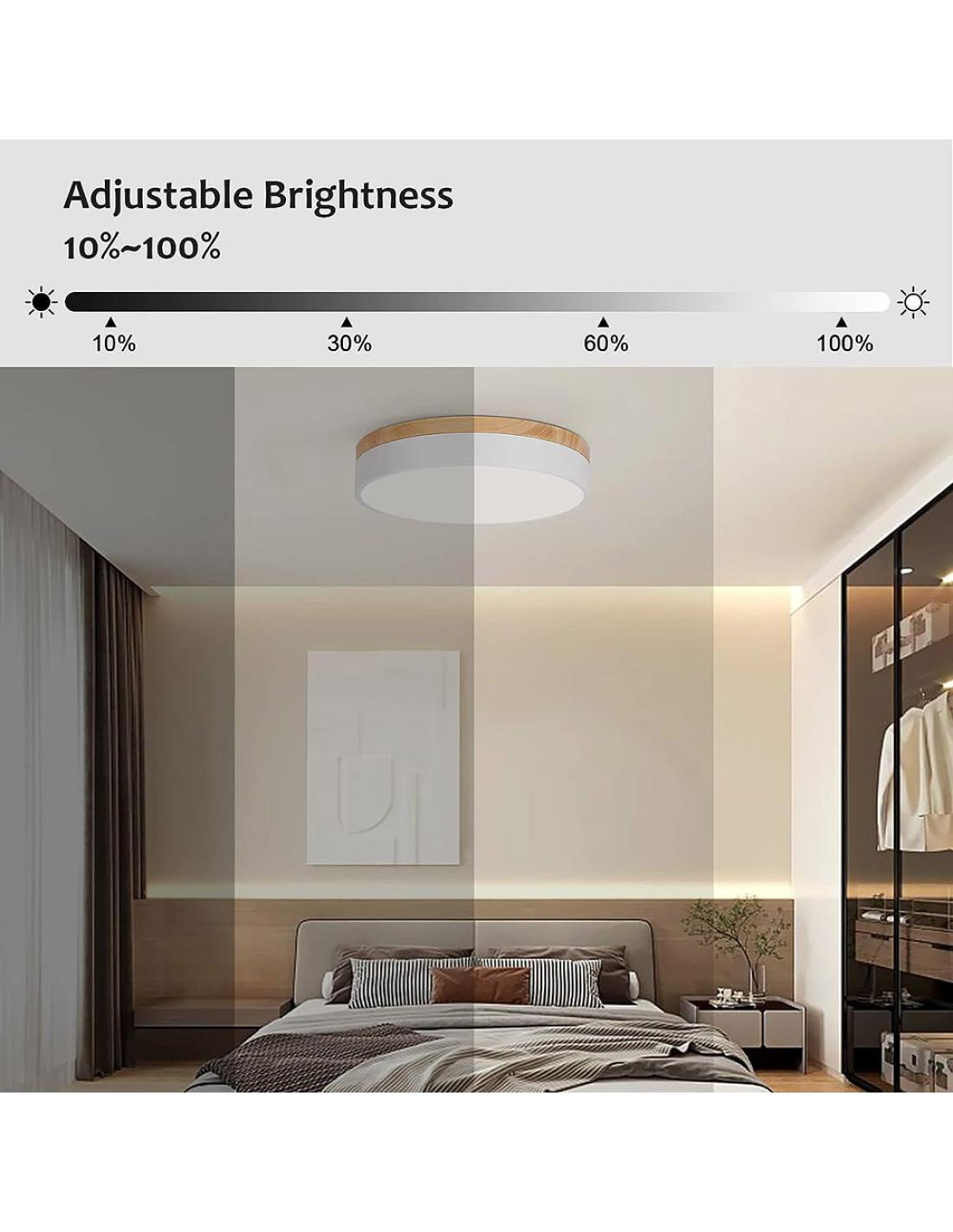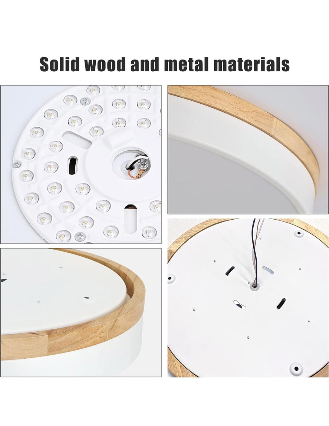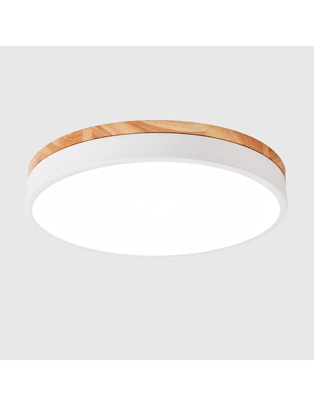 Luminaria de superficie minimalista realizada en aluminio lacado y aro de madera maciza con difusor en metacrilato traslucido.