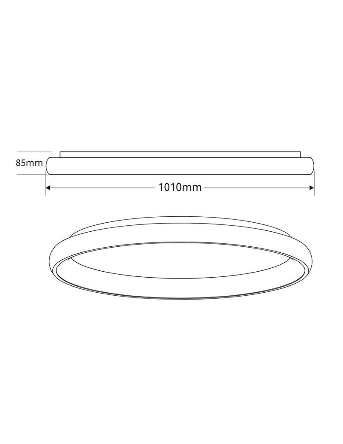 Ideal para salones modernos, oficinas o comedores, la luminaria proporciona una iluminación uniforme y sin deslumbramientos gracias a la sutil fuente de luz del interior del anillo, creando un ambiente agradable.
