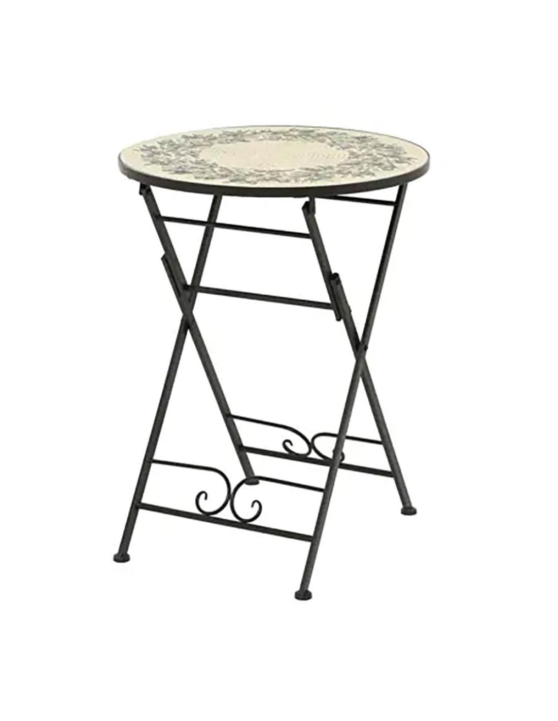 Mesa metálica/mosaico plegable, atenas, color negro, para exterior ø58 x 75 cm 8720725162570 70189 OUTDOOR LIVING BY DECORIS