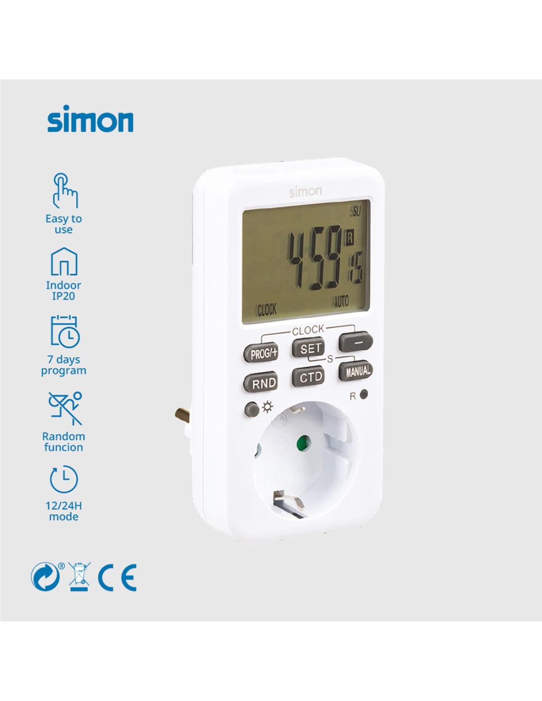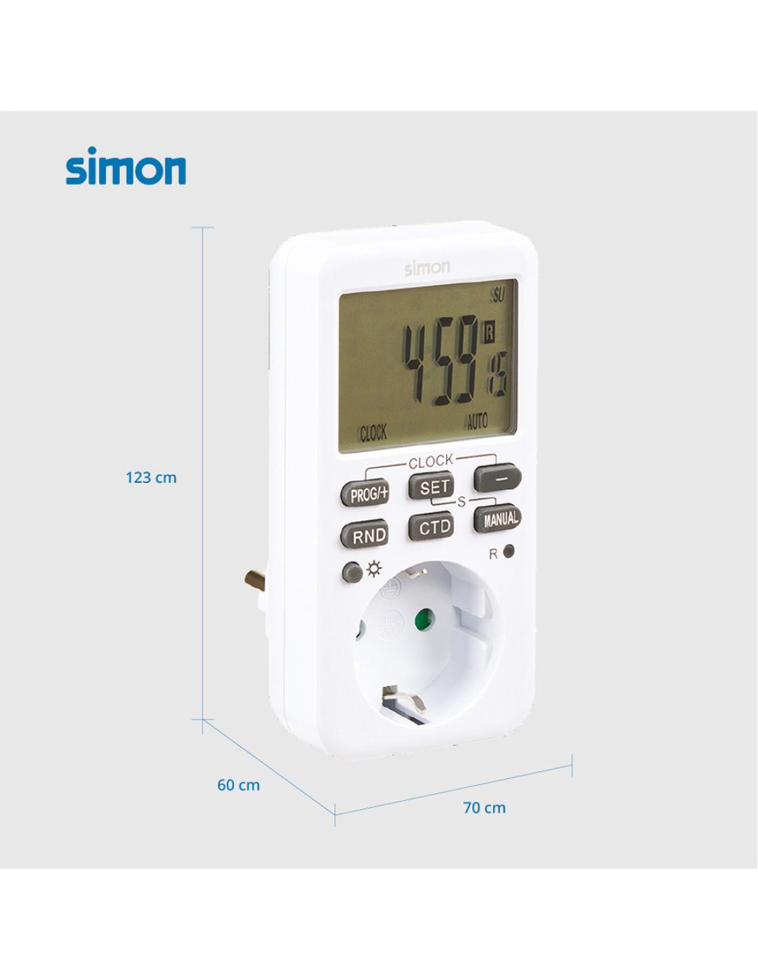 Programador digital af711202 semanal max. 3600 w, 16 a, 230 v ~50 hz solución para el control energético y seguridad del hogar hasta 10 programas on/off con intervalos de 1 minuto modo 12/24 h función de simulación de presencia, función cuenta atrás función de horario de verano disponible pantalla lcd retroiluminada batería de respaldo y protección infantil temporizador eficiente, práctico y seguro, para interior ip20