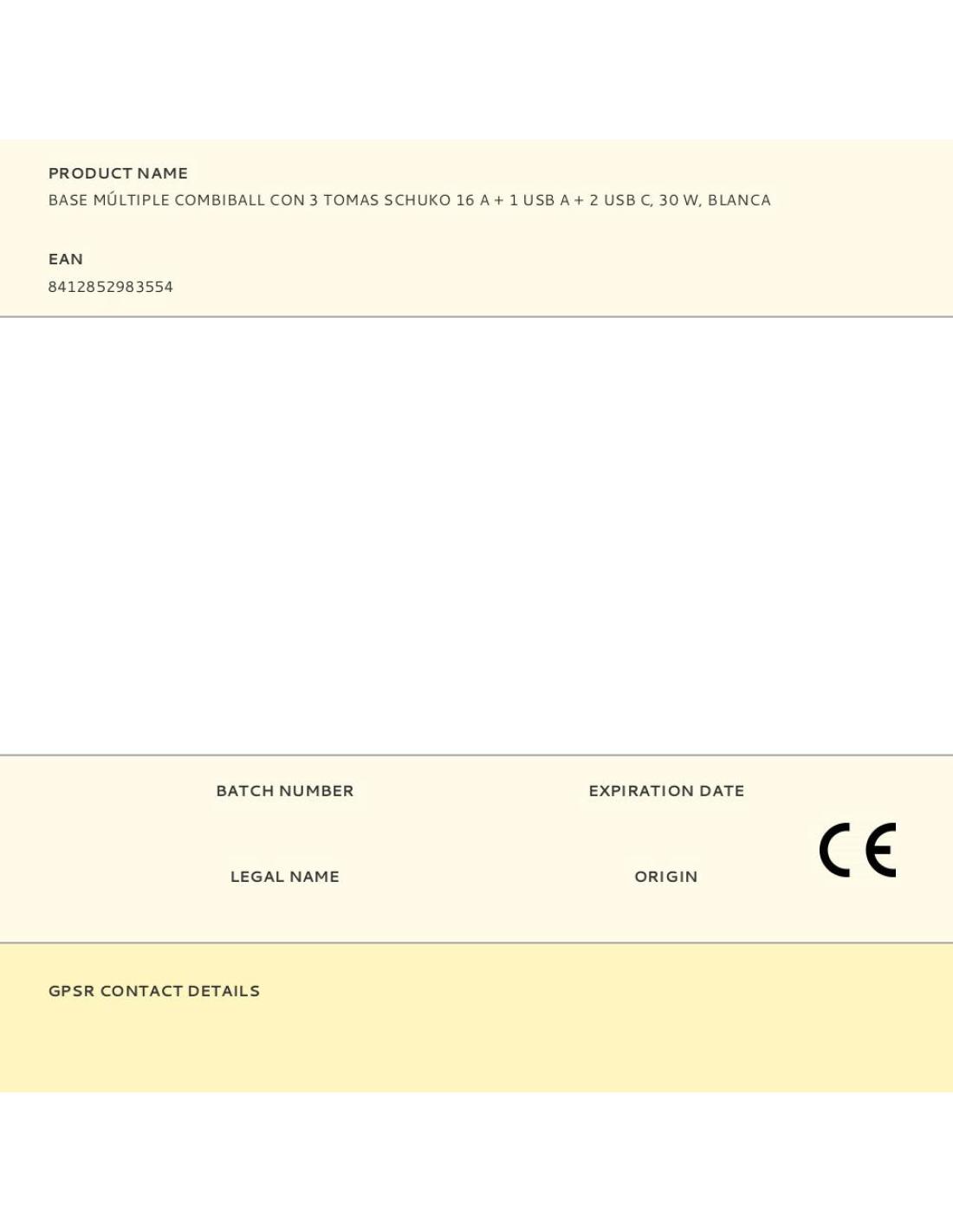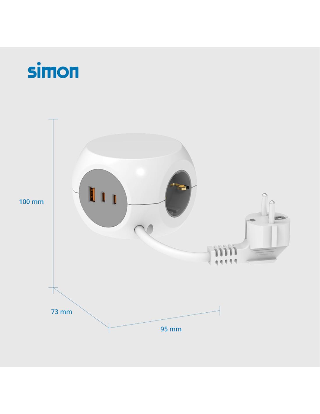 Base múltiple combiball con 3 tomas schuko 16 a + 1 usb a + 2 usb c, 30 w, blanca 8412852983554 41038 SIMON