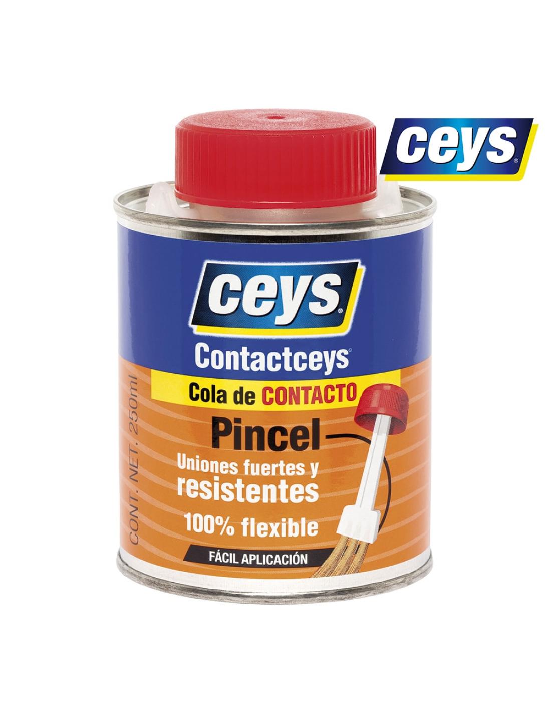 Contactceys pincel 250ml. cola de contacto en base neopreno, muy polivalente y de uso general para unir multitud de materiales. proporciona uniones resistentes, flexibles y duraderas. en especial proporciona inmejorables resultados para pegar cuero, piel, madera, goma, caucho, etc.