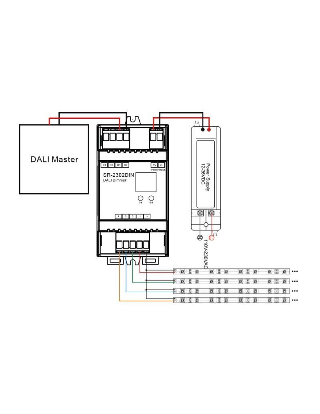 - Voltaje constante regulable DALI disponible en 12VDC, 24VDC, 36VDC de salida, 4 canales, 5A por canal de salida