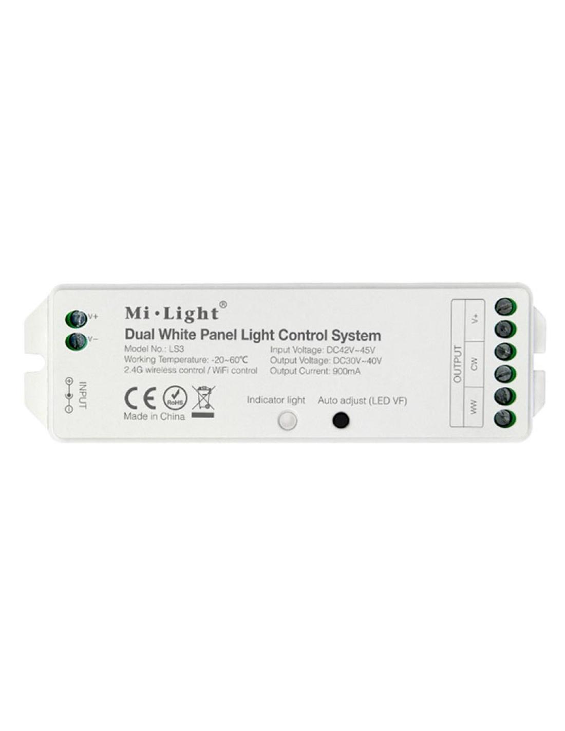 Controlador específico para paneles led con entrada DC30-40C, 900mA. En combinación con un mando permite regular la intensidad y temperatura, apagado/encendido de un panel led. Con un mismo mando es posible controlar todos los controladores a su alcance.