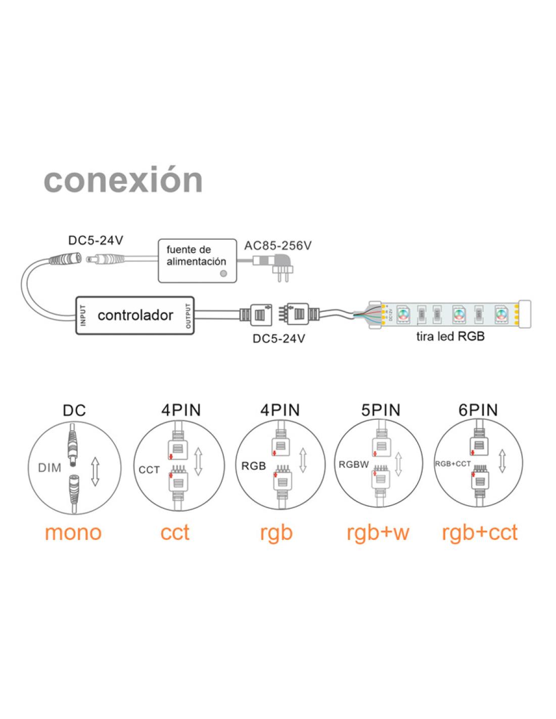 Controlador RF Mini tira LED RGB+CCT + mando