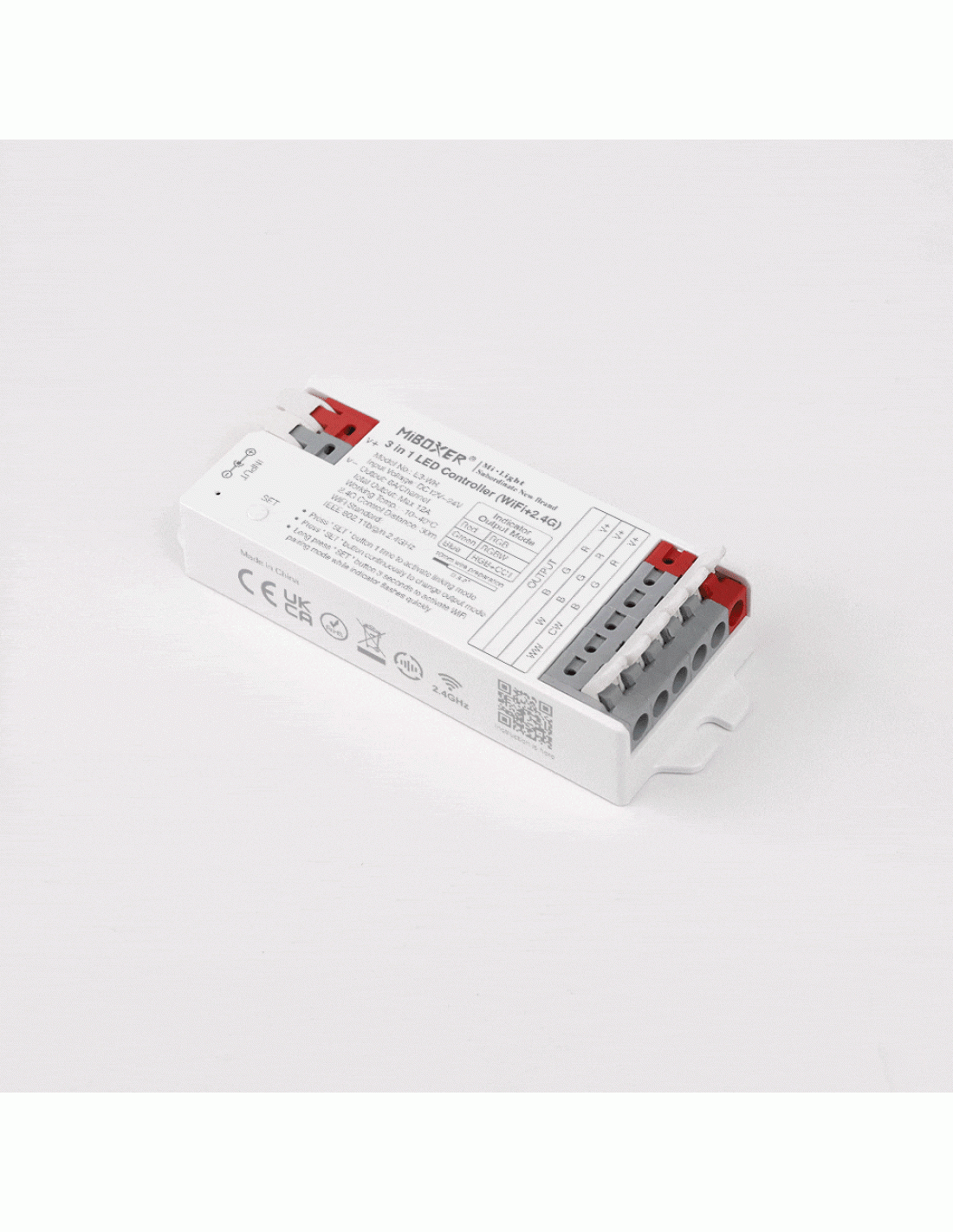 Controlador 3 en 1 con conectores rápidos, controla tiras RGB / RGBW o RGB+CCT con el mismo controlador. Hasta 4 zonas diferentes de tiras led con una potencia de 12A (6A por canal). Con auto-transmisión entre los demás controladores con lo que se consiguen distancias sin límites y compatible con una amplia gama de mandos a distancia RF de mano, pared, APP, Wifi, Amazon Alexa y Google Assistant. Compatible con transmisor DMX.