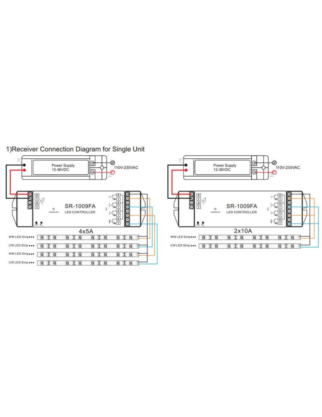- Los receptores pueden trabajar con el transmisor RF-WIFI y ser controlados desde cualquier dispositivo móvil IOS o Android.